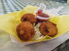 Once our friends left, Chris and I decided to go visit a few other museums. I loved the exhibit on the history of Texas, and it was fun to walk through the Taylor Swift Experience. Then, we got serious about the food. I always go for two fair classics: buttered corn and funnel cake. Chris loves to try something from the new fried food released every year. This time it was a hard choice between trying the fried jello and the barbecue-infused brisket balls. He decided to go for the brisket balls since we knew we would want funnel cake later. They were delicious!